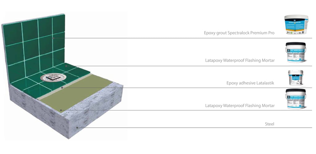 LATAPOXY WATERPROOF FLASHING yra hidroizoliacija, pagaminta epoksido pagrindu. Mišinys sukuria garams ir vandeniui nelaidų barjerą. Gali būti naudojamas sandarinti tarpus tarp įvarių pavrišių, pvz.: metalo, PVC ir pan. Mišinys tepamas naudojant glaistyklę.