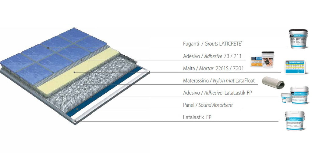 LATAFLOAT yra speciali sistema, sudaryta iš armuoto cementinio mišinio, polimerinio skysto priedo ir trimačio nailono tinklelio. „LATAFLOAT“ leidžia įrengti 1 cm storio plaukiojančius išlyginamuosius sluoksnius vietoj tradicinių 4–5 cm storio.